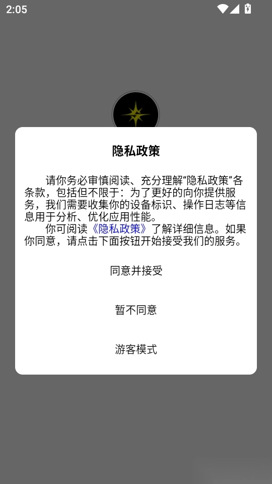 首先打开软件,阅读“隐私政策”内容后,点击“同意并接受”按钮即可进入。