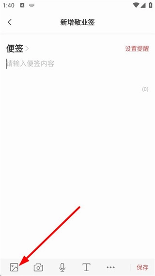 在敬业签的新增页面,点击左下角的图片图标,就能把图片添加到便签里。