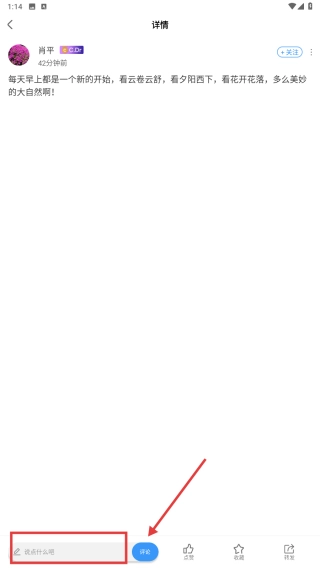 4、在图文详情页面,点击评论输入框并填写评论内容,随后点击评论按钮,即可完成评论互动的操作。