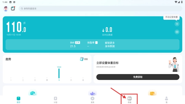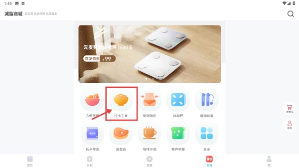 1、打开体重管理类应用,点击底部的商城选项,进入商城页面。
