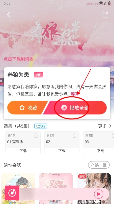 2、进入《养狼为患》详情页面后,点击“全部播放”,系统将提示您进行登录操作;