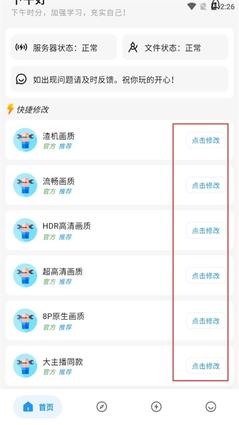 2、进入软件后,可在首页的快捷修改区域选择其中一个选项进行点击修改。