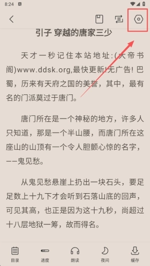 3、点击设置图标,进入个性化配置菜单,调整您的阅读偏好。