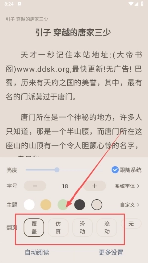 4、挑选适宜的翻页模式完成设置,从而增强您的阅读流畅度与舒适感。