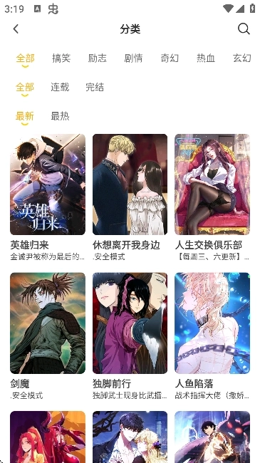 4、分类板块为用户细化整理了各类漫画作品的集合,帮助用户更轻松地找到自己喜爱的漫画类型。