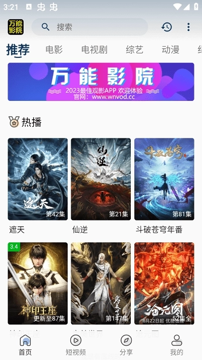 1、在本站安装万能影院,打开软件。