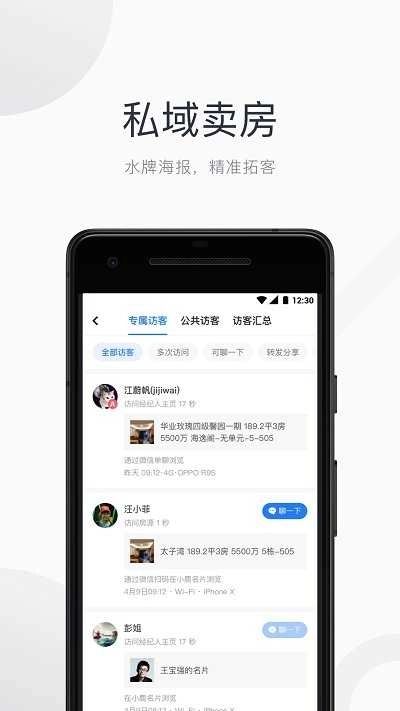 通过客户需求自动匹配房源,快速筛选合适资料,既能面对面时一键分享房源,也能深度分析客户的浏览与分享行为,精准把握其真实心理。