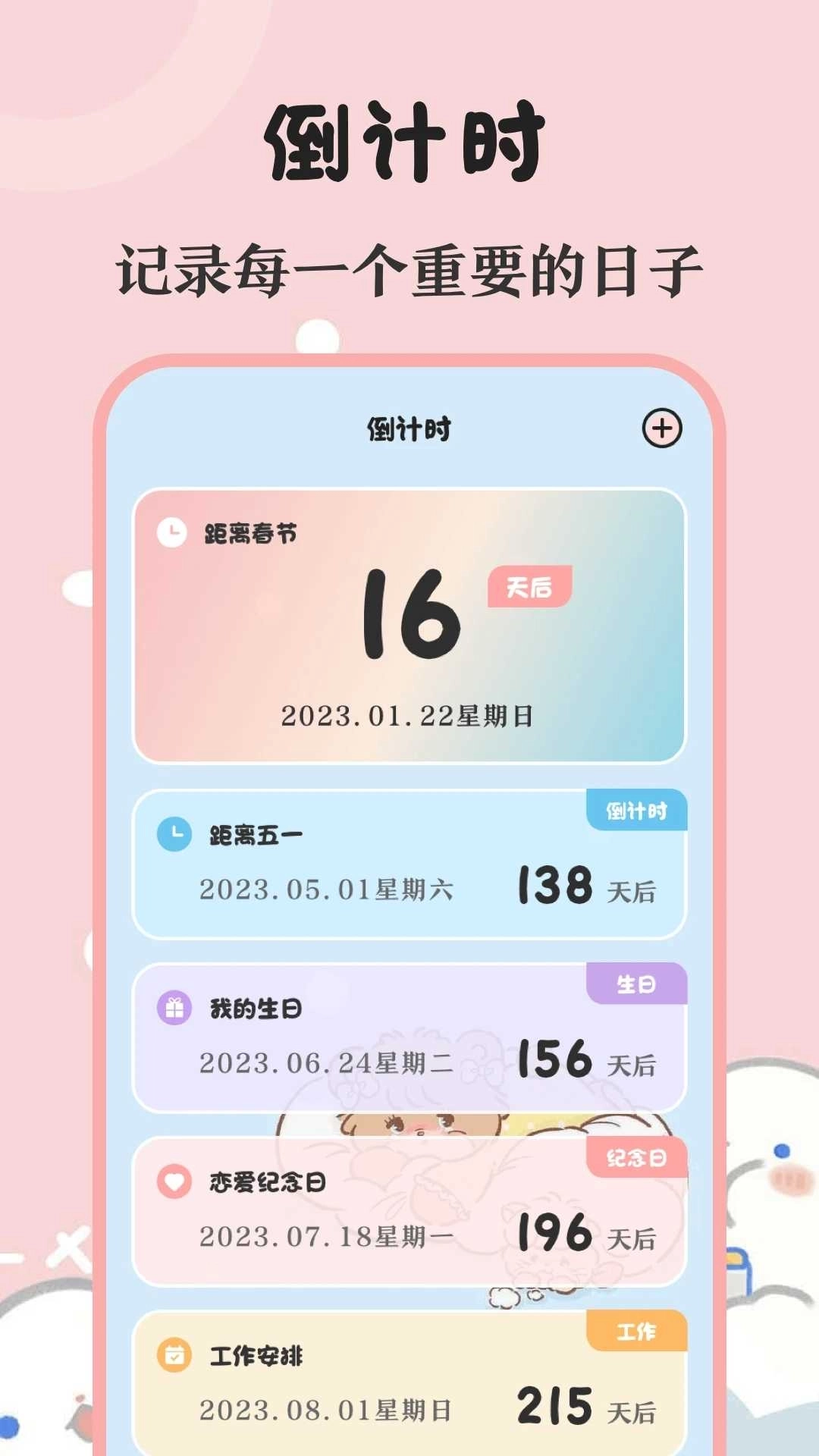 1、支持添加生日、纪念日和倒数日,可切换公历与农历,提供多种提醒方式,助你不错过每一个重要时刻