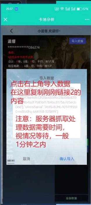 4、进入内部并完成登录,随后在抽卡分析界面的右上角找到并点击“导入”按钮。