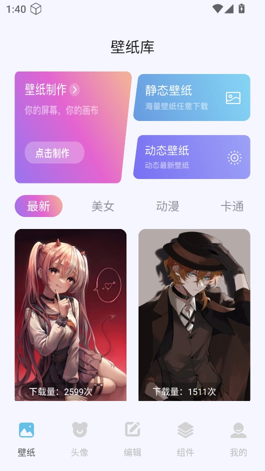 预览功能:支持壁纸预览,让用户在设置前就能查看效果,确保符合个人喜好;还能将壁纸保存到本地存储,方便用户随时取用。