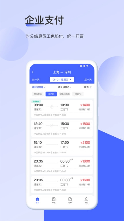 1、透明高效的商旅服务平台,可随时查看并管理订单状态。