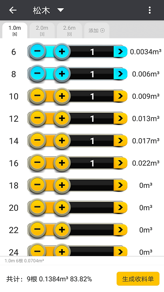 3、丰富且精准的体积表,助力用户知悉各类不同尺寸的原木。