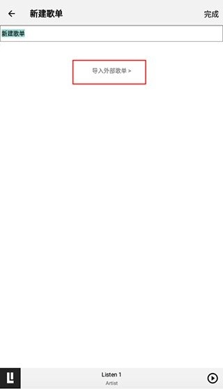 2、在新建歌单页面中点击导入外部歌单