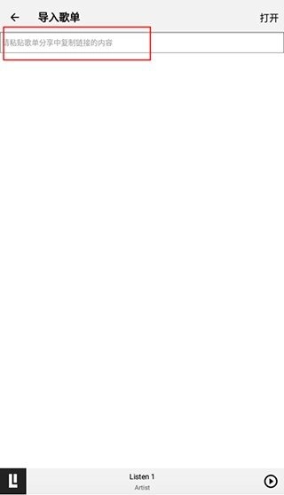 3、复制需要导入的歌单链接,通常在歌单的分享功能中能够找到该链接。随后,将其粘贴至框内,点击“打开”,即可成功导入。