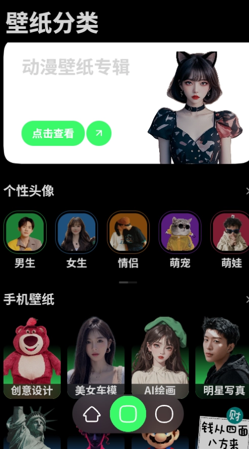 2. 海量高清壁纸与头像资源等你来享,数量多达数万,类别丰富多样,包含自然风景、动物、动漫、游戏、艺术等。
