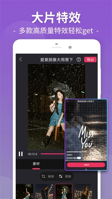 功能强大的视频剪辑制作:您可以随心编辑剪辑视频,精确到秒。同时,您还可以选择多个视频进行拼接合并,创作出全新的视频作品。