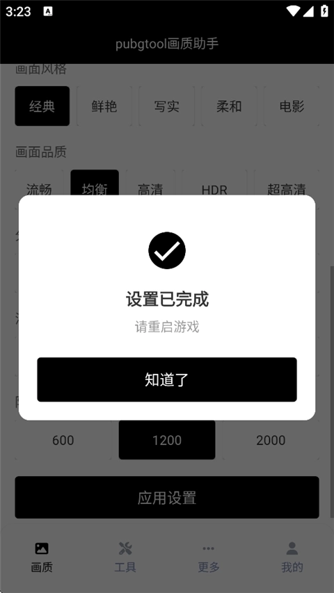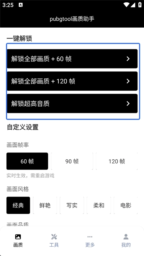 PUBGTool这款软件能针对不同机型提供差异化的画质调整服务,适配各类优化方案。通常来说,手机配置越高端,所能获得的优化效果就越出色,部分机型甚至可以开启240HZ的极限帧率模式。
