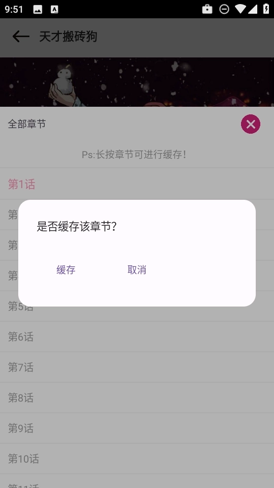 第四步:在弹出的操作选项中,直接点击【缓存】按钮,系统将自动开始该章节内容。