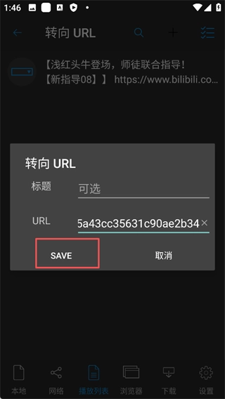 3. 输入目标视频的直链地址,点击【SAVE】保存;