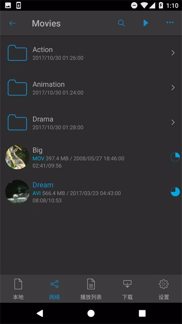 nPlayer 便捷的远端资源管理功能,支持通过 URL 直链网络视频: