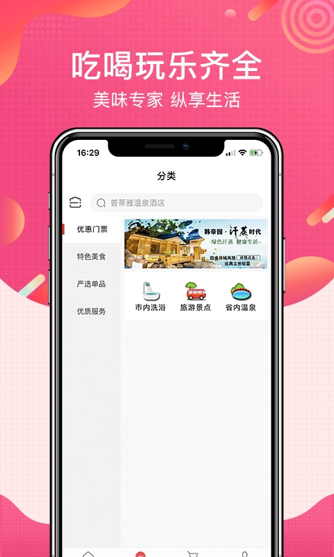 多场景智能搭建:围绕洗浴、温泉、餐饮、周边游等生活场景,整合场景资源,满足用户休闲消费的多样化需求,无需切换多平台查找服务。
