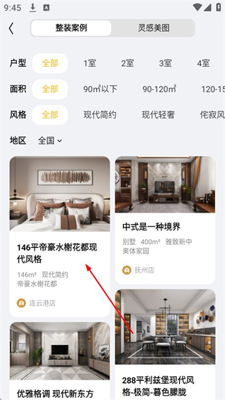 1. 开启金螳螂家,于首页轻点案例美图,即可进入整装案例页面。