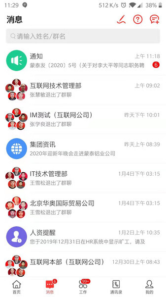 4、具备通讯录功能,为用户提供服务,方便用户迅速找到同事并及时联系。