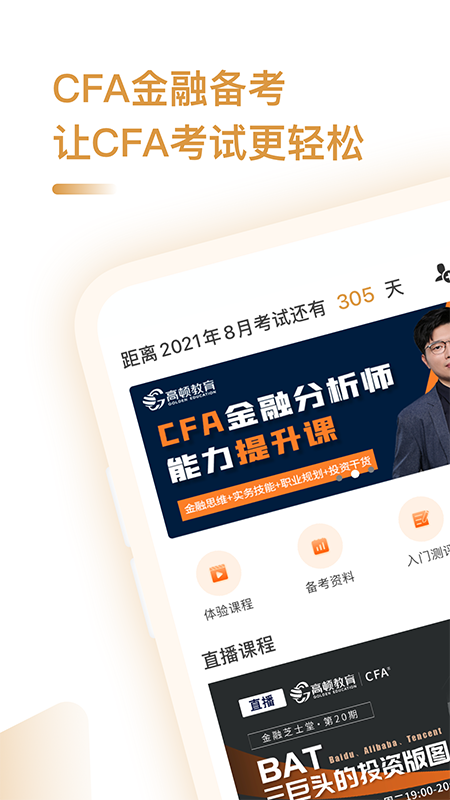1、专门为金融分析师考生开发的学习应用,带来考试直播视频,名师在线讲解;