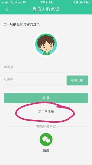 2. 点击“未登录”,进入后选择“新用户注册”。