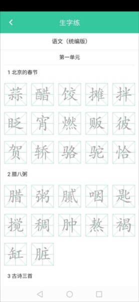 8、点击“生字”按钮,进入相应界面学习生字。