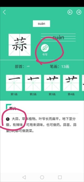 9、逐个点击生字,接着点击“书写”,即可查看书写笔顺,下方还会展示该生字的组词。