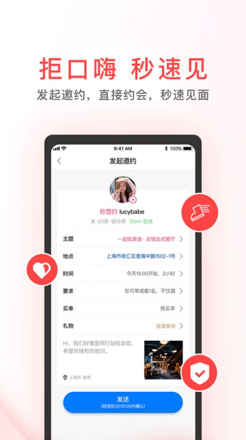 操作简单,发起邀约,直接约会。