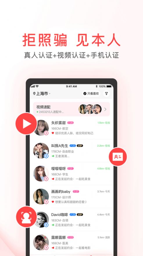 快乐去约会,真人和视频认证,拒绝虚假。