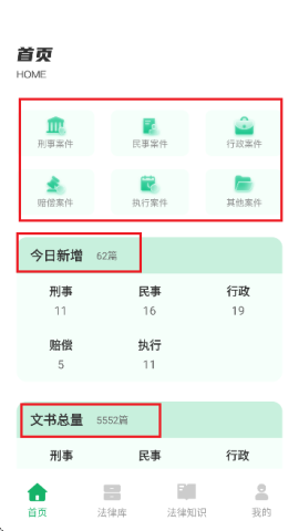 2、开启后,界面将呈现刑事、民事以及行政等各类案件信息,其中涵盖今日新增信息与文书的总数量。