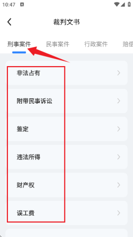 3、挑选所需的案件类型,点击进入便能查看详细的案件信息。