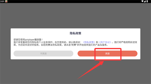 1. 打开应用,阅读隐私政策,点击同意后进入主界面。