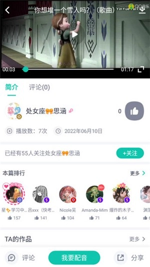 参与视频配音之后会自动保存作品,然后上传到平台