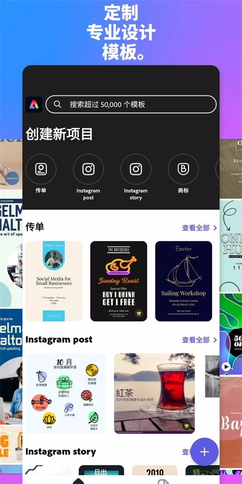 adobe express是一款对新手友好、操作便捷的处理工具软件,用户借助这款软件能够自由处理照片与视频,凭借丰富的模板和素材制作出自己理想的效果,十分适合生活或工作场景下的做图需求。