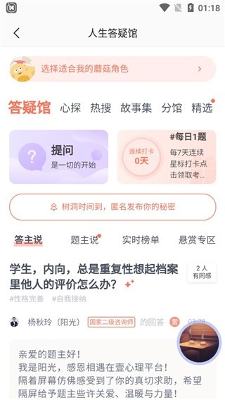 自助:倾听、建议、学习。每位访客都可以帮助他人,学习到最新鲜、最实用的心理成长知识和技能。