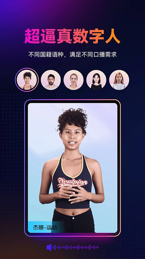 1、超逼真技术——基于4K实景拍摄人物深度学习生成,动作表达丰富自然,无限接近真实拍摄效果。