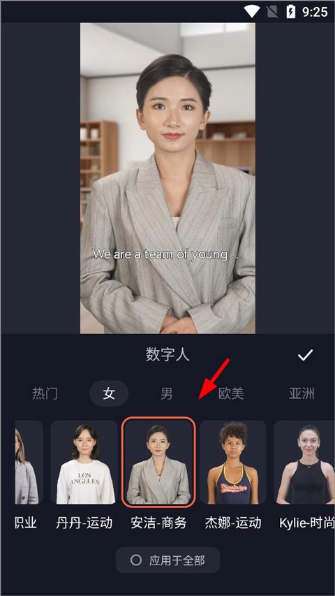 1、一键式-每组模板都带有故事板、数字人物、贴纸、音乐等元素,一点即可应用,秒转专业视频。