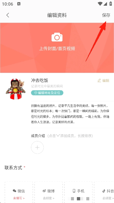 2、根据提示编辑资料并保存