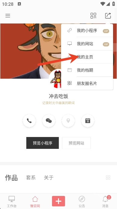 4、选择我的主页即可分享
