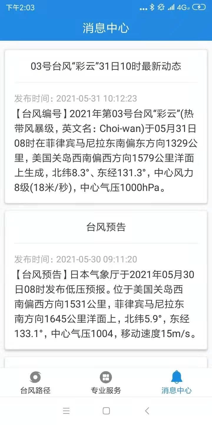 3.每日更新台风的最新进展,给出清晰的数据,助力用户掌握台风每天的变化状况。