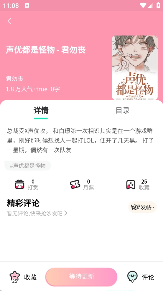 3.点击你想要观看的小说/漫画即可进入详情页面