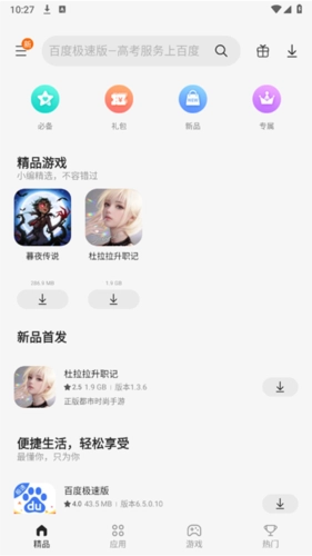 1、精品游戏,新品首发还有更多专属礼包不容错过