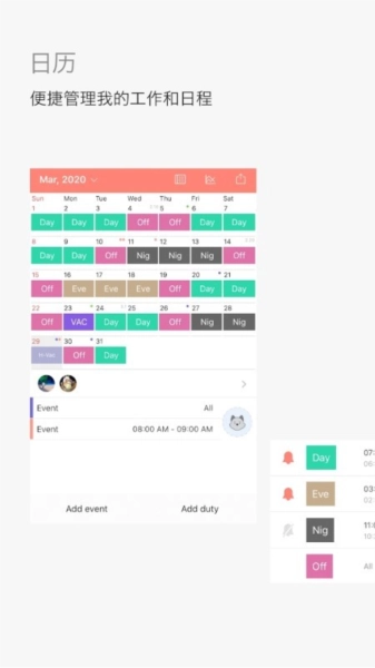 myduty手机版是一个集工作安排、假期管理、团队协作以及个人信息管理于一体的综合平台。无论是繁忙的医院工作,还是日常生活的点滴安排,myduty都能提供全方位的支持。它允许用户轻松创建、编辑并分享工作计划,支持多种社交平台的直接发布,如网站、Facebook、Twitter等,同时,特有的小部件设计使得查看和更新工作表变得极为便捷。