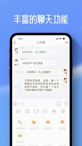4、已读未读,清晰可见:可查看发送的聊天信息的阅读状态,沟通更高效。