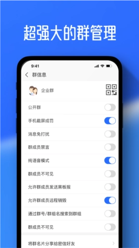 2、在线设置群,一键添加群成员,快速发布公告,便捷管理