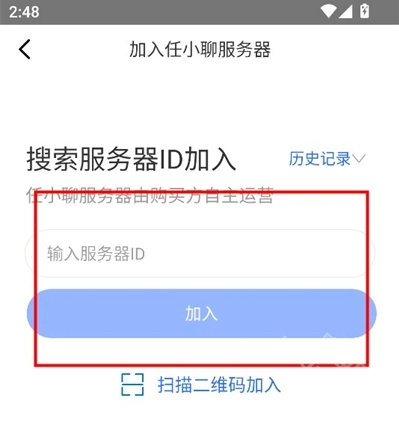 2、想要加入任小聊天,需要搜索点击搜索服务器id加入其中。